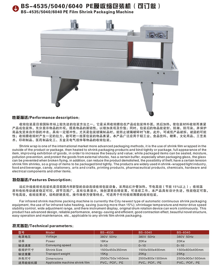 BS-4535/5040/6040 PE膜收縮包裝機(可訂做)